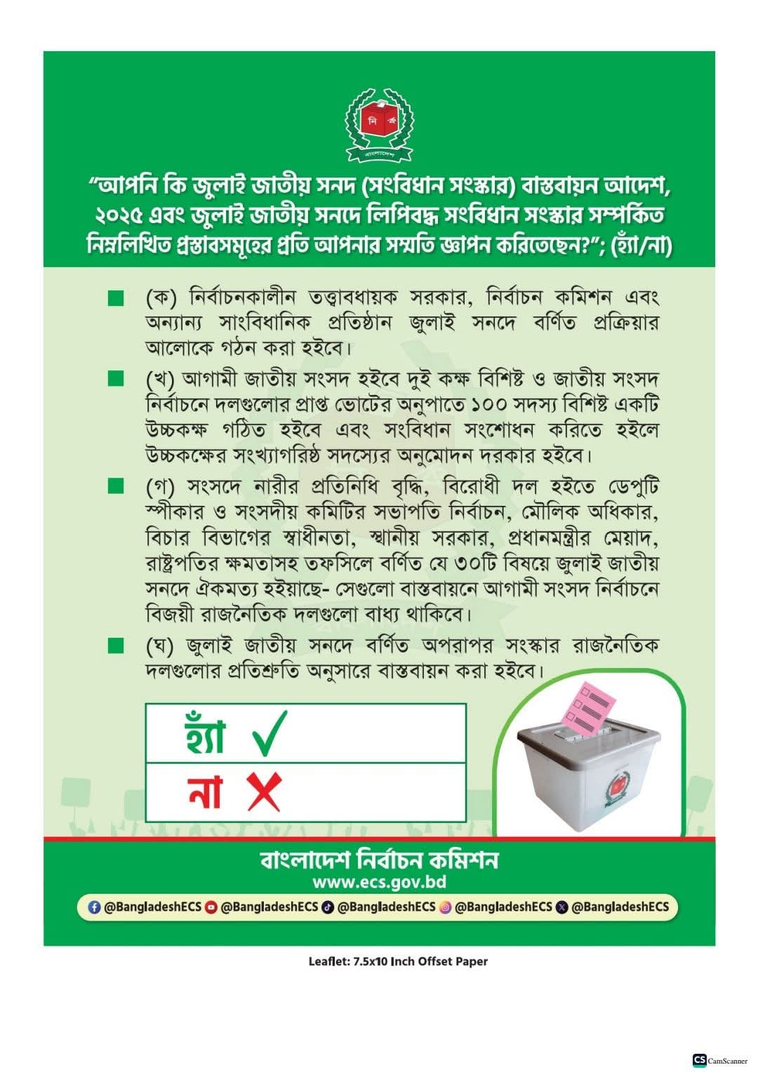 ত্রয়োদশ জাতীয় সংসদ নির্বাচনে হ্যাঁ/না সংক্রান্ত লিফলেট